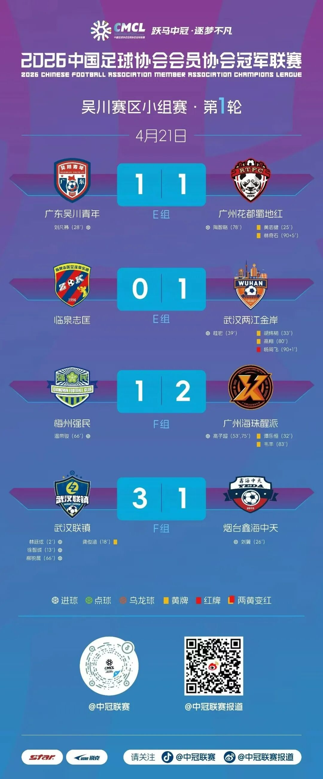 2026年4月21日,中冠联赛大区赛吴川赛区E组首轮的一场焦点战在吴川江心岛体育场主场地激情上演。客场作战的广州花都蜀地红队面对实力不俗且拥有主场之利的广东吴川青年队,展现出了极强的专业能力与韧性。经过90分钟的激烈鏖战,蜀地红队顶住压力,凭借下半场的关键进球,最终以1-1顽强逼平对手,在客场抢下宝贵一分!