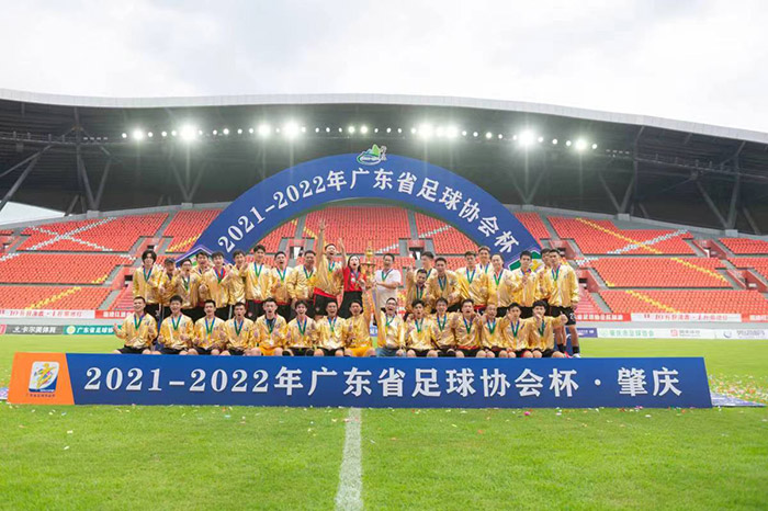 2021-2022赛季广东省足球协会杯决赛,在肇庆新区体育中心举行,由广东蜀地红队与深圳理昌队争夺冠军。一开场两支队伍就踢出了超高水平,整场比赛非常激烈,引得现场观众欢呼一片。最终,广东蜀地红队以2:1击败深圳理昌队勇夺本届赛事冠军,并获得代表广东参加中国足协杯的参赛资格。