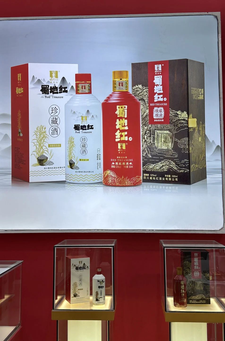 展厅内展出的“蜀地红·原浆原液”、“蜀地红·珍藏酒”等主打产品琳琅满目,更有独特的“蜀坔红限量款”和“蜀地红定制款”吸引众多消费者驻足。