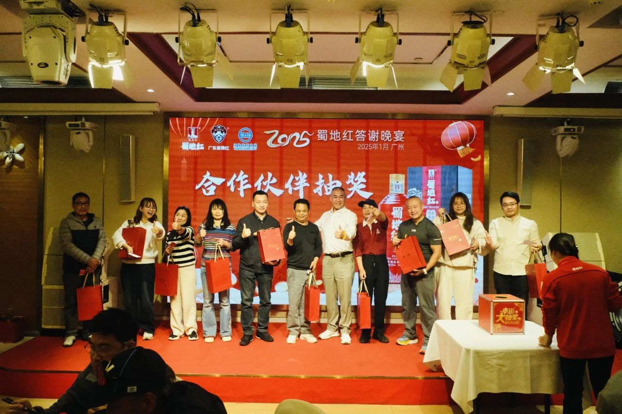 随着一轮又一轮的抽奖环节落下帷幕,这场洋溢着欢乐与温馨的答谢晚宴也逐渐走向尾声。回顾2024年,尽管市场环境复杂多变,蜀地红酒业依然稳健前行,在产品研发、市场拓展及客户服务等多个方面展现了强大的影响力和竞争力。