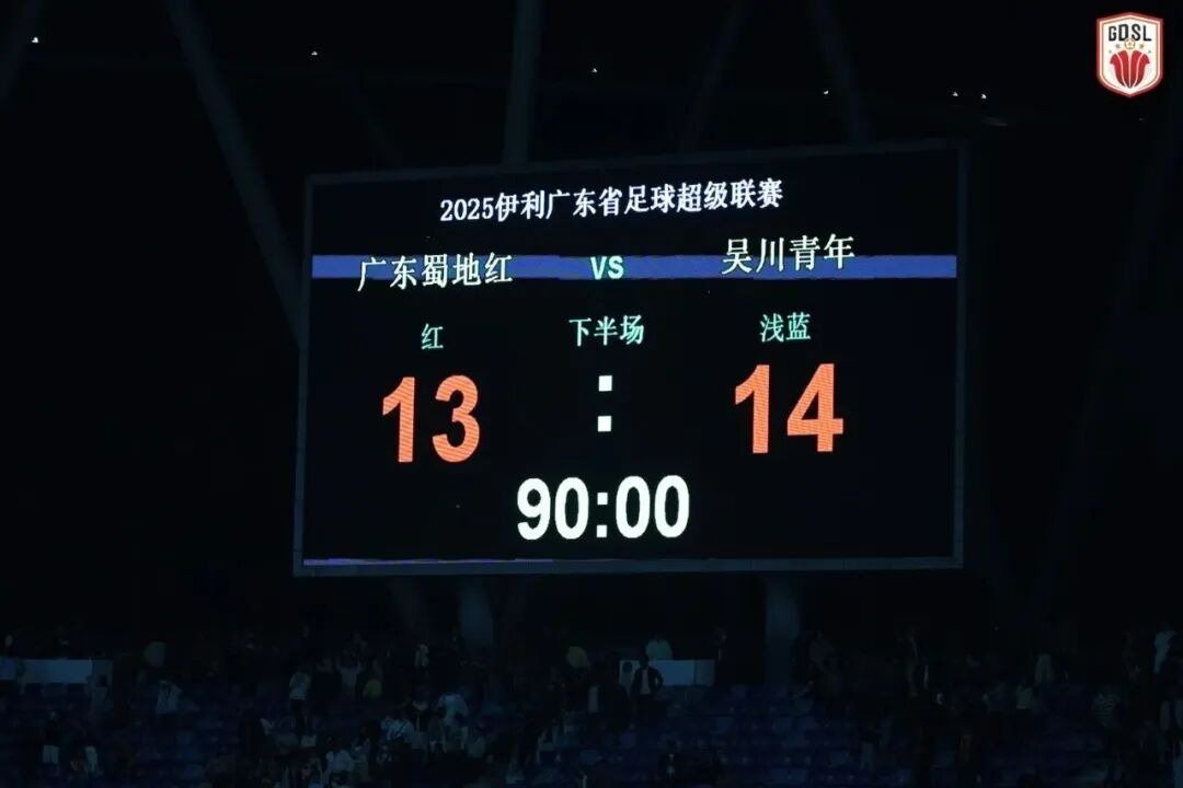 比分定格在13:14——这串数字,恰似我们共同对足球最深情的表白。恭喜吴川青年,感谢所有的球迷,我们共同努力加油。